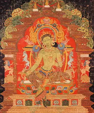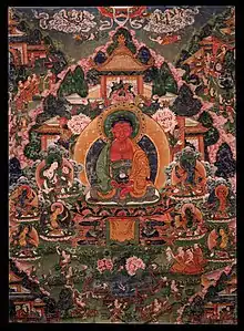 Le bouddhisme tibétain est une branche du bouddhisme qui s'est développée au Tibet à partir du VIIe siècle. Comme dans toutes les régions bouddhistes, les trois véhicules du bouddhisme, le hinayana (comprenant le theravada), le mahayana et le vajrayāna existent[1]. La principale forme du bouddhisme tibétain est cependant le bouddhisme tantrique, autre nom du vajrayāna[2] intégrant des aspects principaux des deux autres branches[1].