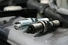 - Un mauvais réglage de l'allumage — allumeur et ouvertures des soupapes — entraine une dégradation importante des électrodes de la bougie. Le moteur perd en puissance voire est dégradé par les détonations induites par un allumage trop tôt[26].