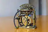 - un arrangement de 52 touches à piston sur un large hémisphère en laiton, l'ensemble ressemblant à une grande pelote à épingles ;