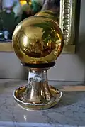 - Une autre superstition concernant les watch balls en forme de miroir sphérique (voir également l'article de M.V. Berry[6] pour une analyse mathématique.) suspendue dans une pièce de la maison, est qu'elles empêchent une sorcière d'entrer dans la pièce, car la totalité de la pièce était visible dans le miroir et une sorcière ne pouvait pas supporter de voir son reflet dans un miroir[5].