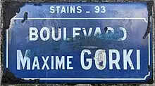 La partie de cette voie comprise entre l'ancienne route départementale no 12 et la grande rue de Stains s'appelait boulevard de Stains. Le Conseil Municipal, par délibération du 25 mai 1895, la renomma boulevard d'Aubervilliers[4],[5]. Elle fut ensuite renommée en hommage à Maxime Gorki (1868-1936), écrivain russe.