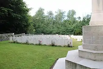 À 300 mètres à vol d'oiseau au sud-ouest du cimetière, se trouve un mémorial du champ de bataille érigé par le gouvernement canadien pour rappeler le forçage du canal du Nord par le Corps canadien le 27 septembre 1918 et l'avancée vers Mons et le Rhin[1].