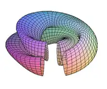 Dans cette immersion, l'auto-intersection est un cercle inscrit dans le plan Oxy. La constante positive est le rayon de ce cercle. Le paramètre donne l'angle dans le plan Oxy et est un paramètre définissant la section de la figure en forme de 8.