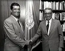 Boutros Boutros-Ghali (en arabe : بطرس بطرس غالي, /ˈbotɾos ˈɣæːli/[1] ; en copte : Ⲡⲉⲧⲣⲟⲥ Ⲡⲉⲧⲣⲟⲥ-Ⲅⲁⲗⲓ), né le au Caire et mort le dans la même ville[2], est un universitaire, juriste, politologue, homme d'État et diplomate égyptien[3],[4]. Il est le sixième secrétaire général de l'Organisation des Nations unies[5], de à et le 1er secrétaire général de la Francophonie de à [6].