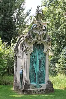 - Georgette Vierling est née à Bouxières-aux-Dames le 11 juillet 1873. Fille du peintre nancéien Antoine Vierling et élève de son père, elle a exposé ses peintures au Salon des Artistes Lorrains de 1892 à 1896. Mariée à l'écrivain Jules Cahen dit Jules Nathan et dit aussi Jules Rais, le 27 juillet 1897, elle est décédée le 21 mai 1899 à Paris (VIIe)[52]. Son mari lui fera construire un monument funéraire[Note 9], considéré comme l'un des premiers dans le style « Art nouveau ».