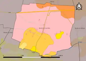 Par ailleurs, le sol du territoire communal peut faire l'objet de mouvements de terrain liés à la sécheresse. Le phénomène de retrait-gonflement des argiles est la conséquence d'un changement d'humidité des sols argileux. Les argiles sont capables de fixer l'eau disponible mais aussi de la perdre en se rétractant en cas de sécheresse[30]. Ce phénomène peut provoquer des dégâts très importants sur les constructions (fissures, déformations des ouvertures) pouvant rendre inhabitables certains locaux. Celui-ci a particulièrement affecté le Loiret après la canicule de l'été 2003. Une grande partie du territoire de la commune est soumise à un aléa « moyen » face à ce risque, selon l'échelle définie par le Bureau de recherches géologiques et minières (BRGM)[31].