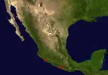 Cette espèce est endémique du Mexique[1]. Elle se rencontre au pied de la Sierra Madre del Sur au Guerrero, au Michoacán et au Colima[2].