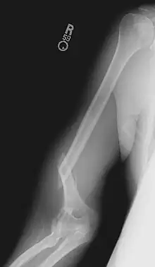 Un bras de fer exerce un couple et une torsion importante sur l'os de la partie supérieure du bras, l'humérus, à un niveau rarement atteint dans d'autres activités physiques[14]. Les os de la plupart des humains ne sont pas habitués à de telles contraintes, et des blessures peuvent survenir très facilement. Le trait de fracture passe généralement au niveau d'une ligne située à mi-chemin entre l'épaule et le coude, ou un peu en dessous.