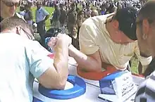 - John Brzenk , (USA) il est considéré comme le plus grand compétiteur de bras de fer de tous les temps[4]. Le film "Pulling John" lui est consacré.
