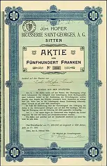 1926 Georges Fertig cède à la société Jean Hofer la brasserie de Bramois contre 400 titres de participation d’une valeur unitaire de Fr. 50.-. Sous le nom de Brasserie Valaisanne S.A., les Brasseries Unies de Sion et de Bramois demeurent pendant près d’un quart de siècle sous le contrôle des gendres Hofer et de Fertig. Alors que la révolution industrielle n’a pas encore atteint les rives du fleuve Sitter, la production ne cesse d’augmenter pour afficher 13 000 hectolitres par an à la fin de cette époque.