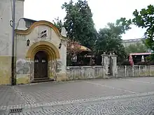 Rue Nikole Tesle se trouve un bâtiment doté d'un rez-de-chaussée et d'un étage à usage commercial et résidentiel datant de la première moitié du XIXe siècle. Au début du XXe siècle, un restaurant a été construit, disposant d'un jardin, dont l'entrée possède une avancée en fer forgé et en verre émaillé de style Sécession[1]. Dans une lunette au-dessus de la porte d'entrée donnant sur le jardin se trouve un relief représentant saint Georges et dans un angle se trouve une niche abritant une statue de saint Jean Népomucène[1].
