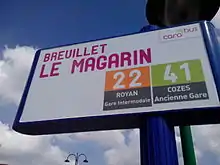 Cinq stations Cara’Bus sont implantées dans la commune : Le Magarin, Breuillet-Garage, Breuillet-Place du Marché, La Simandière et Taupignac. Deux lignes de bus desservent la commune. La ligne 22 permet de rejoindre à la fois les communes de la grande banlieue ouest de Royan (Chaillevette, Étaules, Arvert et La Tremblade/Ronce-les-Bains), le pôle commercial Val-Lumière de Vaux-sur-Mer et la ville de Royan, épicentre de la vie économique locale. La ligne 41 est une ligne à la demande permettant des liaisons avec La Tremblade et ses communes satellites (Étaules, Arvert), l’aire de covoiturage de Fontbedeau, à Saint-Sulpice-de-Royan et les communes de l’Est royannais (Le Chay, Grézac et Cozes).