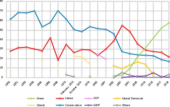 | Travailliste Co-op vainqueur sur Conservateur | Swing | 15.4 | |||