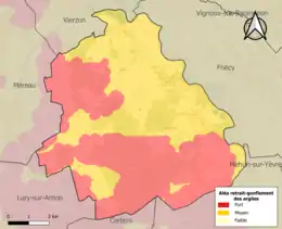 La commune est vulnérable au risque de mouvements de terrains constitué principalement du retrait-gonflement des sols argileux[16]. Cet aléa est susceptible d'engendrer des dommages importants aux bâtiments en cas d’alternance de périodes de sécheresse et de pluie. La totalité de la commune est en aléa moyen ou fort (90 % au niveau départemental et 48,5 % au niveau national). Sur les 269 bâtiments dénombrés sur la commune en 2019, 269 sont en aléa moyen ou fort, soit 100 %, à comparer aux 83 % au niveau départemental et 54 % au niveau national. Une cartographie de l'exposition du territoire national au retrait gonflement des sols argileux est disponible sur le site du BRGM[17],[Carte 2].
