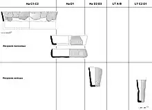 Ces recherches permettent d'esquisser une première typologie des différents types de récipients en terre cuite utilisés à la fois pour chauffer la saumure et mouler des pains de sel. Les premiers fourneaux sont identifiés en 1976 dans la zone d'ateliers du "Pransieu" à Marsal.