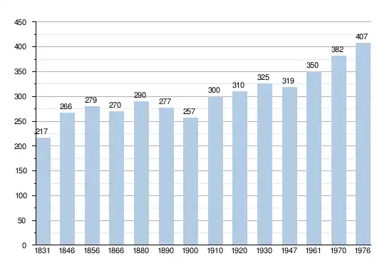 - Sources : INS, Rem. : 1831 jusqu'en 1970 = recensements, 1976 = nombre d'habitants au 31 décembre[2].