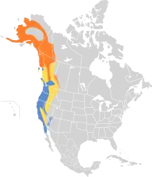 Il se reproduit dans la partie nord de l'ouest du Canada et en Alaska. En hiver, il migre vers l'île de Vancouver au Canada et la côte ouest des États-Unis.