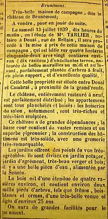 Le château et ses dépendances sont rachetés à de multiples reprises durant le XIXe siècle. Une vente effectuée en janvier 1839 le décrit de cette manière :