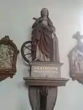 - Sculpture de Ste Barbe en bois polychrome datant du XVIe siècle (la Ste Barbe fut transformée en Ste Catherine d'Alexandrie par adjonction d'une roue) (Classé au monument historique)