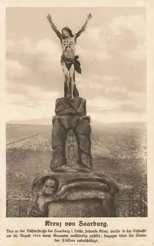 - Calvaire du Christ sans croix : situé route de Sarrebourg (RD 96) ce calvaire a été réalisé par le sculpteur Kugler de Hommarting pour les époux Schivy-Fillinger en 1875. Durant la bataille de Sarrebourg, le , la croix fut arrachée par un obus mais le Christ qu'elle portait resta miraculeusement en place. Cet évènement devint célèbre et fit l'objet de nombreuses représentations[27].