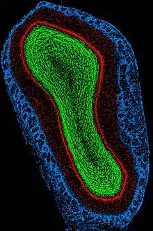 De l'extérieur vers l'intérieur, les différentes couches concentriques et constitutives du bulbe olfactif sont :