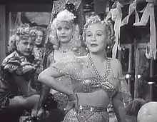 Plus tard, d'autres producteurs entrent dans le sujet, utilisant la photographie couleur et même le travail de repérage. Naughty New Orleans (1954) est un exemple de divertissement burlesque au cinéma, mettant en scène des filles et des gags, bien qu'il fasse passer le lieu d'une scène de maison burlesque dans une boîte de nuit populaire. Le photographe Irving Klaw filme une série de longs métrages burlesques très rentables, mettant généralement en vedette la pin-up Bettie Page et divers comédiens de bas étage, dont la future vedette de télévision Joe E. Ross. Les films les plus connus de Bettie Page sont Striporama (en) (1953)[28], Varietease (1954) et Teaserama (1955). Ces films, comme leur titre l'indique, ne font qu'aguicher le spectateur : les filles portent des costumes révélateurs, mais il n'y a jamais de nudité. À la fin des années 1950, cependant, des films plus provocateurs voient le jour, utilisant parfois un format de « colonie de nudistes » et le film burlesque relativement insipide s'éteint.