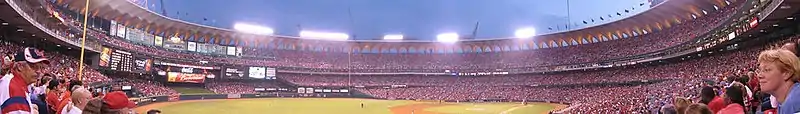 Pour que le stade se transforme d'un terrain de baseball à celui de football américain, deux séries de 8 000 sièges pouvaient être déplacées parallèlement l'une à l'autre pour former un terrain de football. L'Astroturf (surface artificielle) avait remplacé la pelouse naturelle en 1970 pour faciliter les conversions du terrain. En 1995, à la suite du changement de propriétaires et de la décision de le destiner exclusivement au baseball, la pelouse naturelle fit son retour, de nouveaux sièges furent ajoutés, ainsi que des nouveaux tableaux d'affichage. Les enclos d'échauffement pour les lanceurs de relève (bullpens) ont été placés derrière la clôture du champ extérieur.