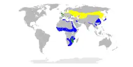 En France, la population actuelle est estimée entre 300 et 400 mâles chanteurs répartis sur trois zones : le littoral méditerranéen, la Loire-atlantique et les départements du nord et du nord-est de la France.