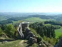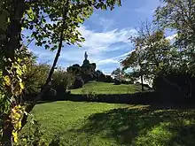 Divers monuments se sont succédé au sommet de la butte. Après l'oppidum et le temple romain dédié à Mercure, une croix vers l'an 900, un château fort au XIVe siècle, c'est une Vierge, inspirée de celle de Fourvière à Lyon, qui a été érigée en 1884 au-dessus des rochers. Des âmes locales nous apprennent qu'il fallut plusieurs paires de bœufs, et autant d'hommes, pour élever cette statue qui regarde vers l'ouest. On y trouve également une table d'orientation.