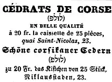 «Lorsque le fruit ne dépasse pas la grosseur d'un œuf d'oie et qu'il est parfaitement régulier et sans aucune aspérité, on le vend sous le nom de Vittima aux Israélites, à l'époque où ils célèbrent la fête des Tabernacles. Ils sont préférables à tous les autres fruits de la même nature qui se récoltent en Europe et en Afrique. C'est pour cela que les Génois ont éveillé les susceptibilités religieuses des israélites en leur persuadant que les cédrats de Corse provenaient d'arbres qui avaient été greffés, et qu'ainsi ils ne pouvaient servir. L'affaire fit du bruit, et un rabbin de Francfort se rendit en Corse pour s'assurer par lui-même de l'origine des cédrats. Depuis lors la vente des Vittime a repris une grande valeur» (1906)[31].