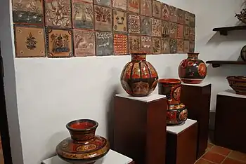 Jarres et carreaux exposés au musée régional de la céramique à Tlaquepaque dans l'état de Jalisco.