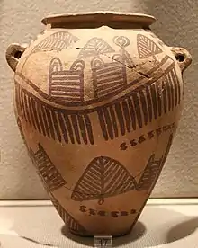 - style white-cross-lined[n 1] : Cette céramique ne se trouve qu'en Haute-Égypte pour la culture de Nagada, phase I, (v. -4000/-3500). Elle est composée surtout d'argile du Nil A. La surface est de rouge-brun à brun-rougeâtre et présente un émail. Le caractère remarquable est le motif peint en blanc à crème (surtout géométrique, mais aussi des animaux, des plantes, des personnages ou des bateaux) :