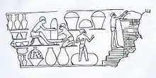 Des indications sur la fonction d'un récipient sont données par des représentations dans les tombes, les inscriptions, la forme, le type de fabrication, les restes de contenu et le contexte archéologique de la fouille. Dans les tombes, les récipients sont souvent dessinés seulement schématiquement. Néanmoins on a pu identifier la fonction des récipients dans certains cas au moyen des représentations tombales, notamment des moules à pain, des corbeilles à filer et des cruches à bière. Les formes des cruches à bière sont déterminées à partir des représentations en relief (comme celles dans le mastaba de Ti) avec des scènes de la fabrication de la bière : ce sont des vases ovoïdes, à fond rond, avec généralement une lèvre faiblement marquée au bord, grossièrement moulée, faits d'argile fortement amaigrie avec des composants organiques[40],[41].