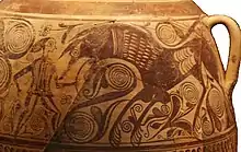 L'école dite de Liria-Oliva consiste en un style décoratif épigraphique, floral et humain de la céramique peinte ibérique[39], dans lequel des personnages des deux sexes sont représentés engagés dans des activités telles que le combat, la chasse ou la vie spirituelle, parfois accompagnés de légendes épigraphiques en alphabet levantin. Le style de Liria-Oliva est éminemment narratif. Les fouilles de Llíria ont fourni la collection la plus célèbre et la plus complète de ce style, notamment le Vase des guerriers avec cuirasse, le Vase des guerriers[40], qui représente une scène de guerre avec des cavaliers portant des casques à panache, des cottes de mailles, des javelots et des falcatas et des fantassins avec des casques, des boucliers et des javelots dans un décor végétal, le Vase de la bataille navale ou encore le Kalathos de la danse[41]. Le nom de Líria-Oliva est dû au fait qu'à l'époque où il a été formulé, l'établissement Contesta de Castellar de Oliva était le point de dispersion le plus méridional de ce type de trouvailles. Sous l'impulsion des aristocraties de la pleine période ibérique, cette production de biens de prestige à distribution essentiellement urbaine s'est peut-être d'abord diffusée à partir d'un seul centre, mais le mécanisme d'émulation compétitive[42] a sans doute rapidement encouragé d'autres productions, dont la diffusion s'étend avec des variations stylistiques et chronologiques de Burriana à Albufereta à Alicante et de Sagunto à Caudete de las Fuentes. Chronologiquement, le style de Liria-Oliva se situe entre le milieu du IIIe siècle et le Ier siècle av. En l'état actuel des recherches, il n'existe pas de décorations de Liria-Oliva antérieures à la moitié du IIIe siècle av. J.-C.