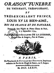 - Oraison funèbre de Louis XV (Paris, 1774), in-4° et in-12° ;