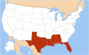 - (en) Cet article est partiellement ou en totalité issu de l’article de Wikipédia en anglais intitulé « Côte du Golfe des États-Unis » (voir la liste des auteurs).