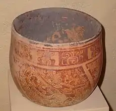 Utilisées pour une multitude d'activités quotidiennes, telles que la conservation des aliments et des boissons, les céramiques étaient également un canevas de commémoration. Trois grands types de céramiques sont utilisés dans la vie quotidienne : les bols, les assiettes et les cylindres. Elles étaient souvent monochromes, c'est-à-dire qu'un seul type d'engobe minéral était utilisé[1]. La poterie polychrome n'était pas seulement utilisée comme décoration, mais aussi comme monnaie d'échange sociale - un signe physique du statut et de l'approbation d'autrui[2].
