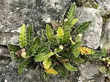 Le Cétérach officinal (Asplenium ceterach) est une fougère de la famille des Aspleniaceae, à feuilles persistantes, découpées en lobes, qui forme des rosettes denses. La face inférieure des feuilles est recouverte d'écailles. Adaptée à la sécheresse (les feuilles s'enroulent) grâce à une aptitude à l'anhydrobiose et la reviviscence[1], c'est une plante commune des fentes des rochers (plante chasmophyte) et vieux murs calcaires (plante lithophyte)[2].