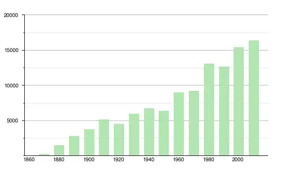 | 1880 | 1 501 | ▲ +555,46 % | |