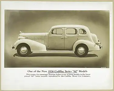 La Série 60 est conçue par le nouveau directeur de Cadillac, Nicholas Dreystadt. Débuts 1936, il comble un écart de prix béant entre les modèles LaSalle et Cadillac Série 70. Initialement, il roule sur un empattement de 3 073 mm (121,0 pouces) et partage la carrosserie B avec les voitures de LaSalle, Buick et l'Oldsmobile F-Series. L'empattement est augmentée à 124,0 pouces (3 150 mm) en 1937-1938.