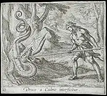 La première épreuve de Cadmus est de triompher du dragon de Mars, qui vient de dévorer deux africains et terrorise ses compagnons. Arbas fait semblant de se battre contre le dragon avant de fuir par lâcheté, alors que Cadmus reparaît et tue le monstre.
