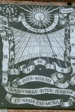 - Dies nostri quasi umbra super terram et nulla est mora (« Nos jours sur la terre sont comme l'ombre, et il n'y a point d'espérance », Bible : 1 Chroniques 29:15 (Louis Segond)[7] ;