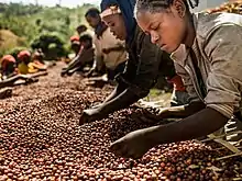 La plante poussant désormais dans de nombreux endroits du monde, l'Éthiopie représente environ 3 % du marché mondial[1]. En 2006, l'exportation de café rapporta 350 millions de dollars[4], équivalent à 34 % du total des exportations de cette année-là[5].