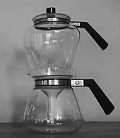 Ce type de cafetière est également connu sous le nom de cafetière Cona, marque populaire en Europe après 1920. Le Bauhaus a produit une interprétation de cet appareil sous la forme de la cafetière Sintrax (de) de Gerhard Marcks, en 1925[3],[4].