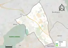 L'occupation des sols de la commune, telle qu'elle ressort de la base de données européenne d’occupation biophysique des sols Corine Land Cover (CLC), est marquée par l'importance des territoires agricoles (67,5 % en 2018), néanmoins en diminution par rapport à 1990 (71,9 %). La répartition détaillée en 2018 est la suivante : zones agricoles hétérogènes (49,4 %), cultures permanentes (18,1 %), zones urbanisées (15,9 %), zones industrielles ou commerciales et réseaux de communication (9,1 %), forêts (7,4 %)[14]. L'évolution de l’occupation des sols de la commune et de ses infrastructures peut être observée sur les différentes représentations cartographiques du territoire : la carte de Cassini (XVIIIe siècle), la carte d'état-major (1820-1866) et les cartes ou photos aériennes de l'IGN pour la période actuelle (1950 à aujourd'hui)[Carte 1].