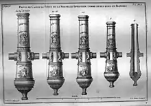 L’amélioration des canons se fit en partie par l’allongement du fût, exprimée en calibres : le système Gribeauval à 18 calibres en 1765 (fût de 1,85 m de long pour une pièce de 8, par exemple).