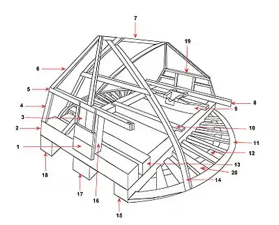 La calotte d'un moulin à vent à calotte tournante repose librement sur le corps d'un moulin à vent et peut pivoter à 360 degrés grâce au système d'orientation au vent (kruiwerk (nl)). La calotte rotative a été inventé au XVe siècle. L'arbre principal avec la « grand rouet » ou « rouet de frein » est situé dans la calotte.