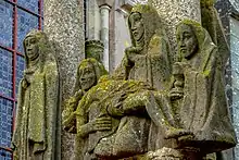 Seules onze statues demeurent sur les dix-neuf qu'il comporte à l'origine. La disposition actuelle des personnages sculptés serait due à une reconstruction après la Révolution.