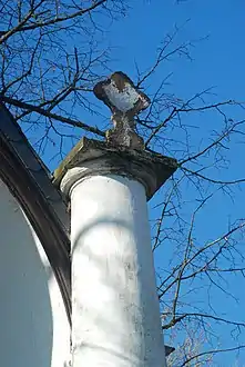 Le gable et les colonnes sont surmontés chacun d'une croix[3].