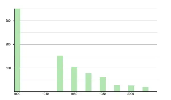 | 1960 | 104 | ▼ −31,58 % | |